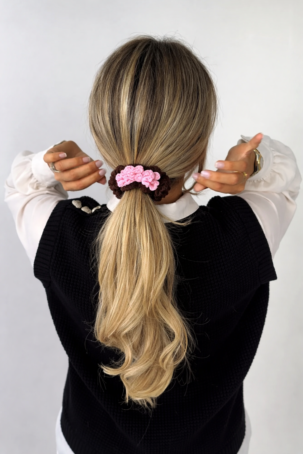 Lightweight and easy to carry, this scrunchie can also be worn as a fashionable wrist accessory, adding a trendy touch to your overall look. The handcrafted detailing reflects creativity and care, making each piece unique and special.