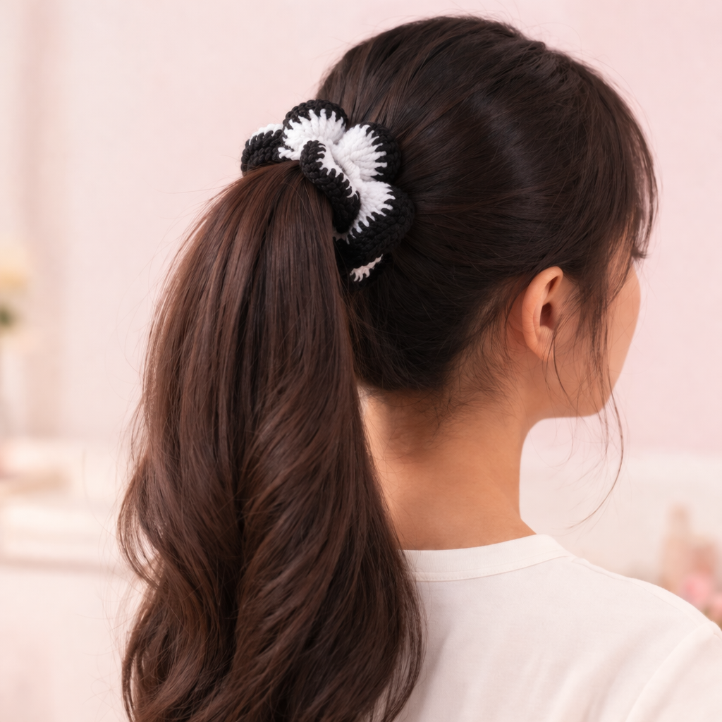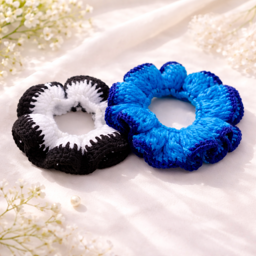 Everyday hairstyle with our beautifully designed Handcrafted Crochet Hair Scrunchie, a perfect blend of comfort, style, and elegance. Thoughtfully handmade with precision, this scrunchie showcases a unique crochet pattern that adds texture and charm, making it more than just a basic hair accessory.